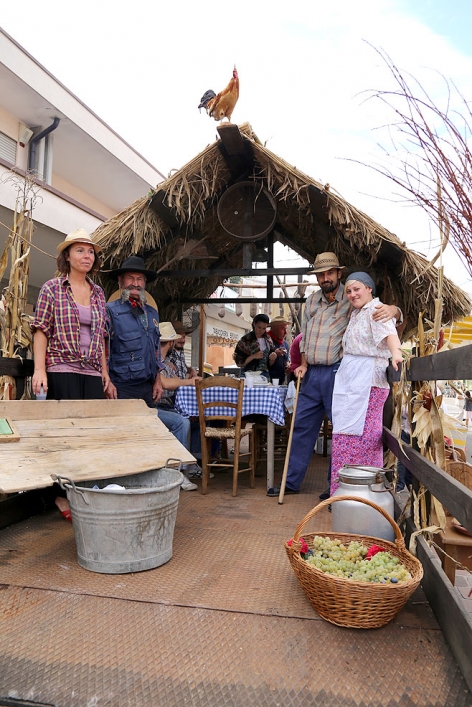 Ad abbellire le vie del centro è stato preparato con maestria un grande carro che ci faceva rivivere la vendemmia ai tempi dei nostri nonni.